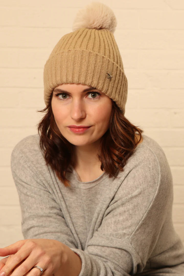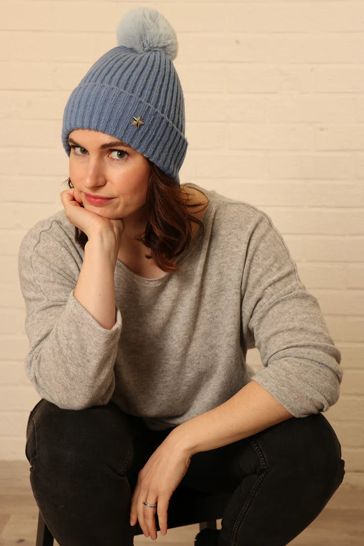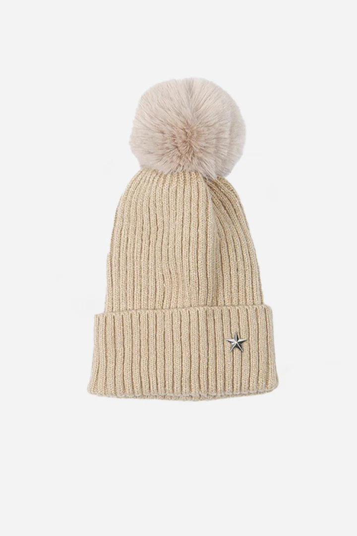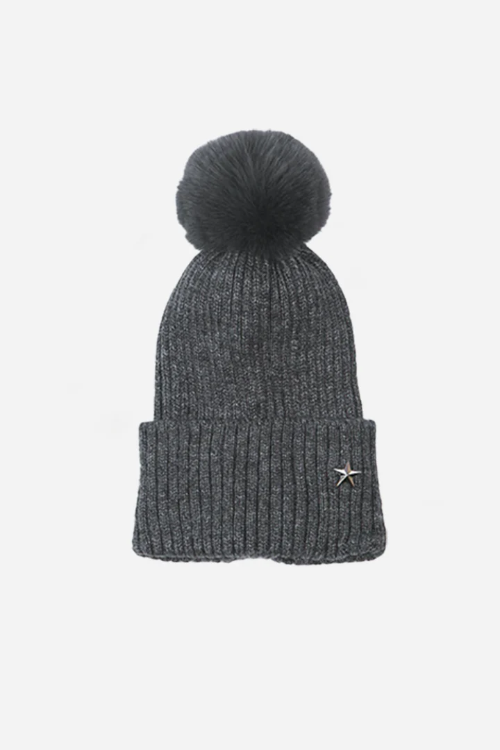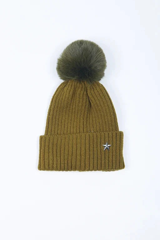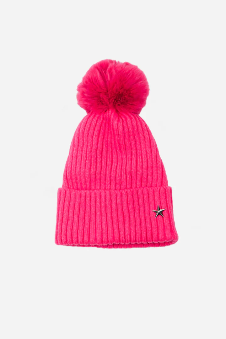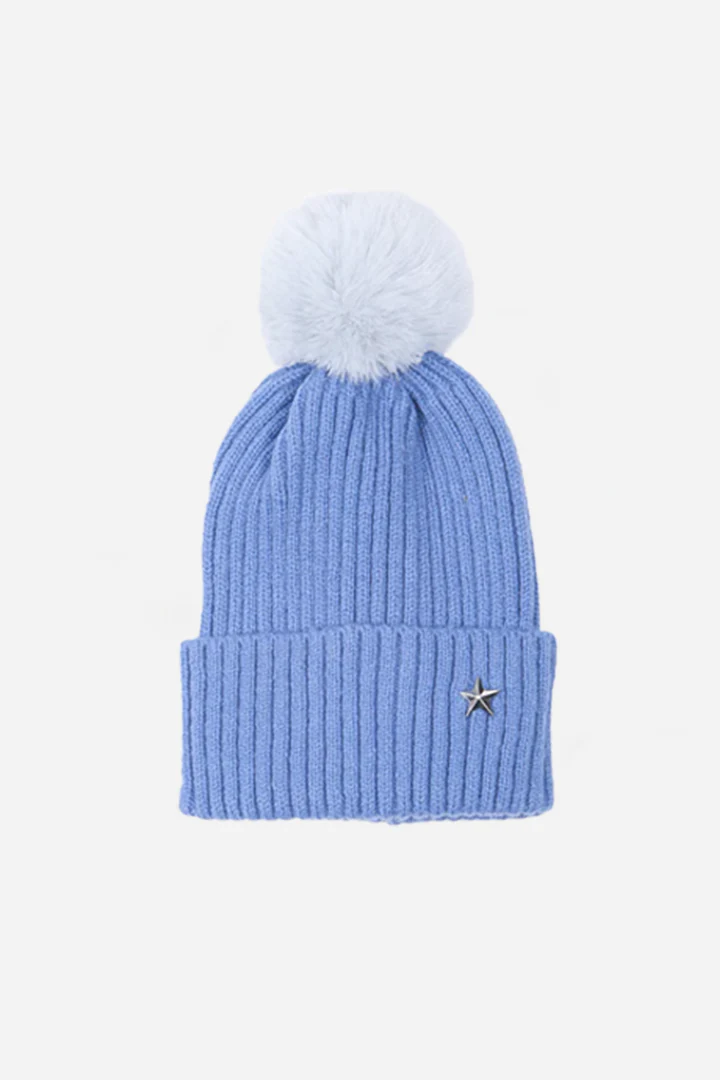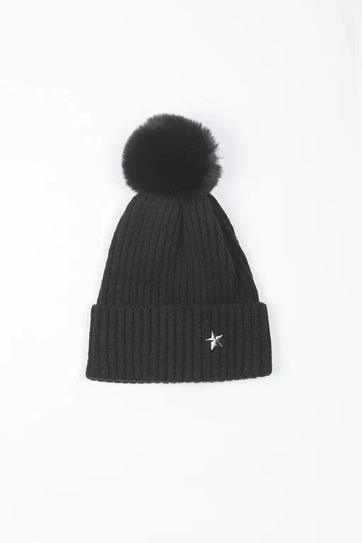 Star Detail Pom Pom Hat - available in 7 colours