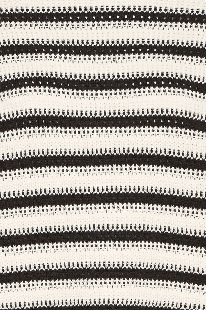 A stunning ivory and black stripe cotton jumper. It features a crew neck and side splits at the base. It’s a perfect layering piece for your wardrobe.