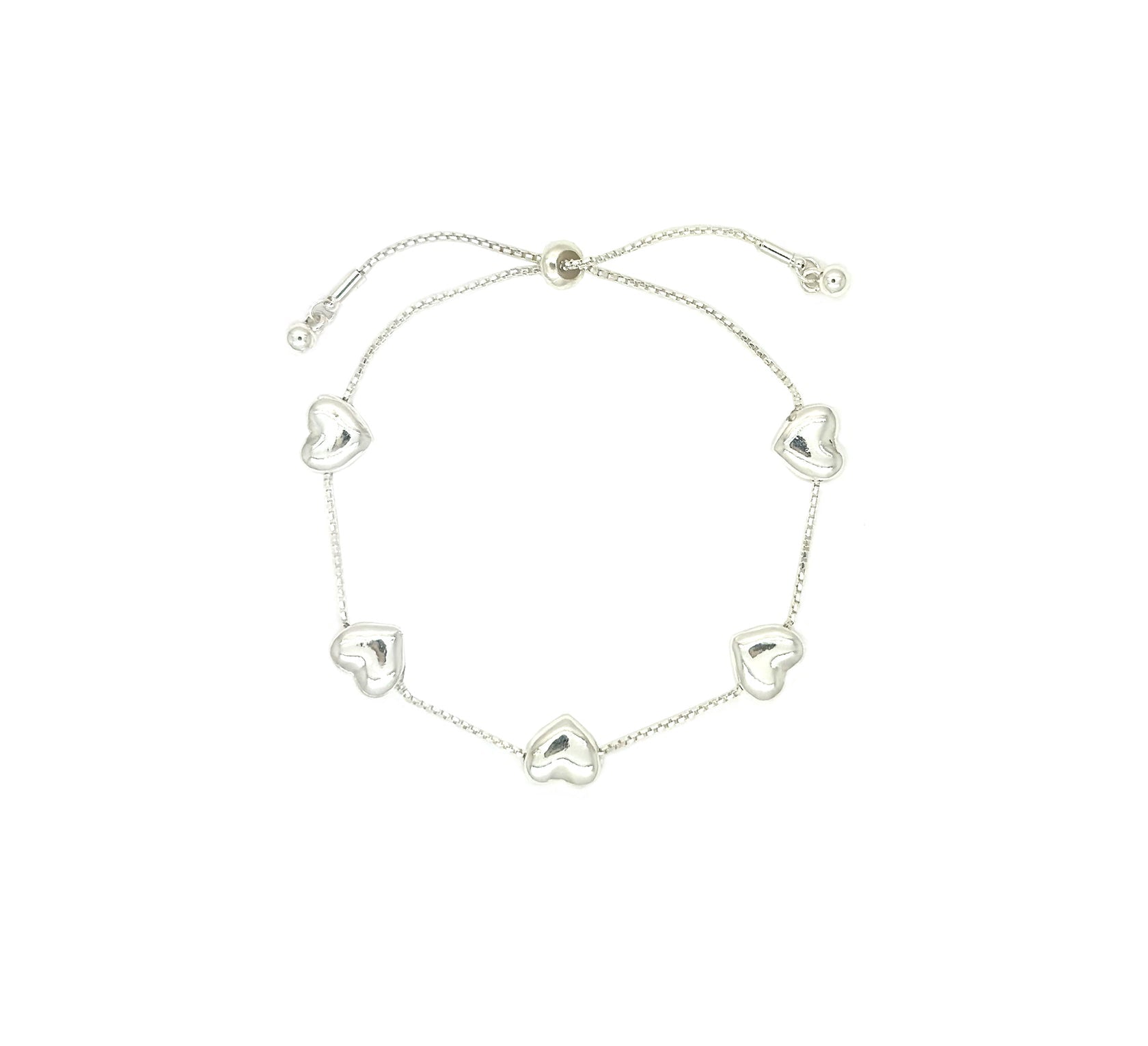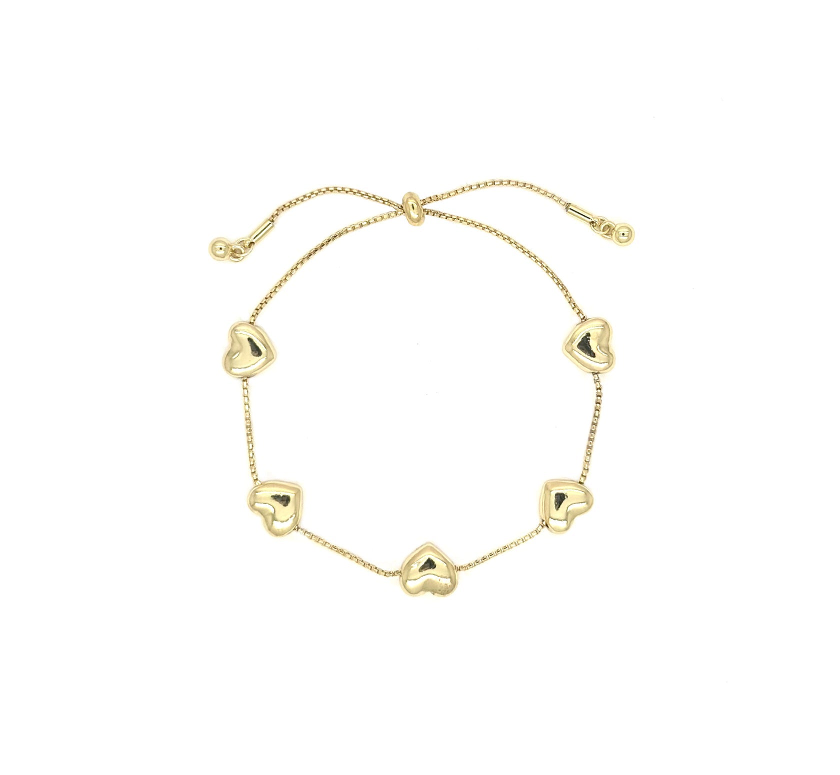 Five Small Hearts Adjustable Bracelet - Gold or Silver