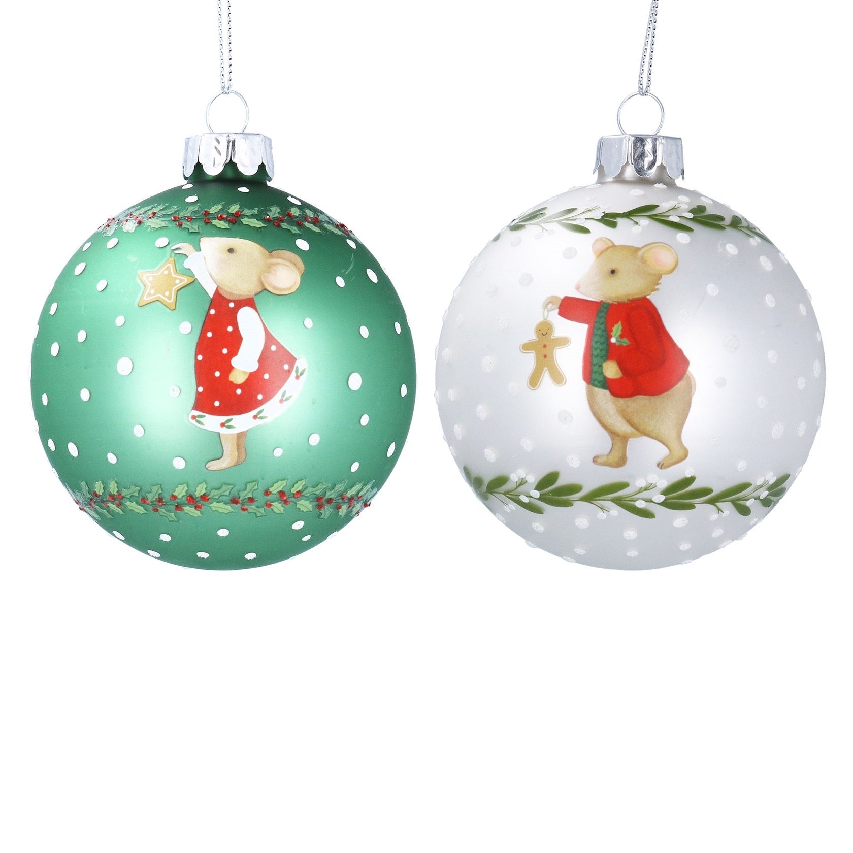 Gisela Graham Holly & Alfie Mouse Christmas Decoration - 2 colours