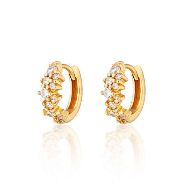 Add a little stardust and shimmer to your ears with our stunning stardust huggie hoop earrings. Inspired by the beauty of the cosmos we have studded each huggie hoop earring with a twinkling display of clear cubic zirconia stones set in an asymmetrical cluster on the front leaving for a smooth polished back. Resembling a constellation of a starry night sky this celestial themed huggie hoop is the perfect way to add sparkle all day.
