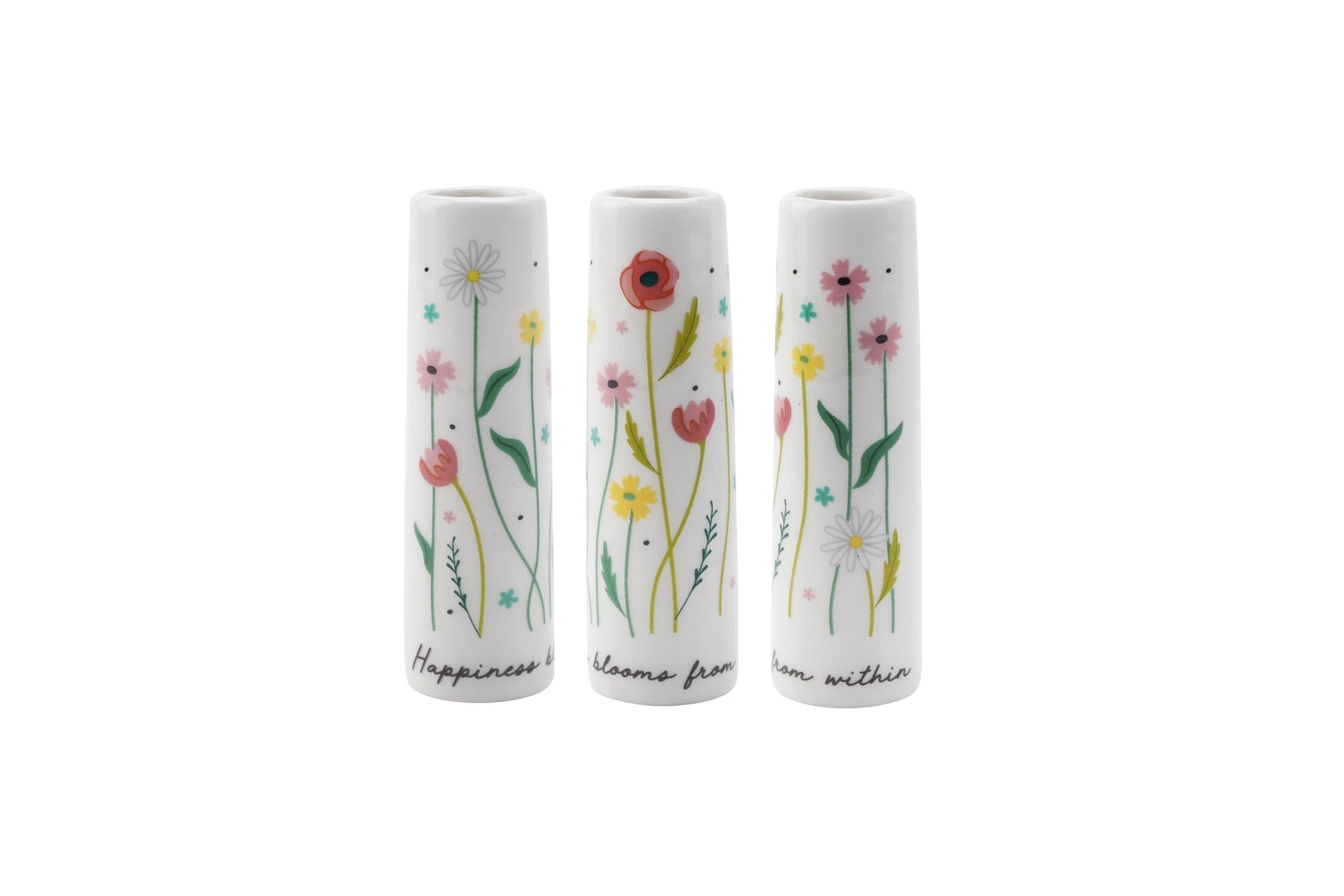Happiness Blooms from within floral Bud Vase