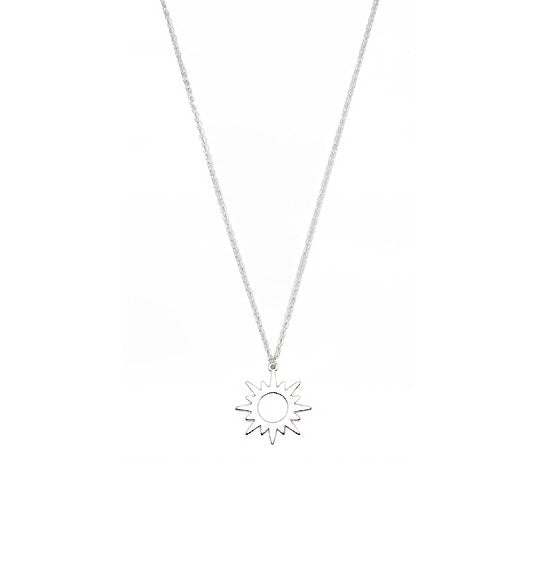 Brushed metal chain with an open sun pendant