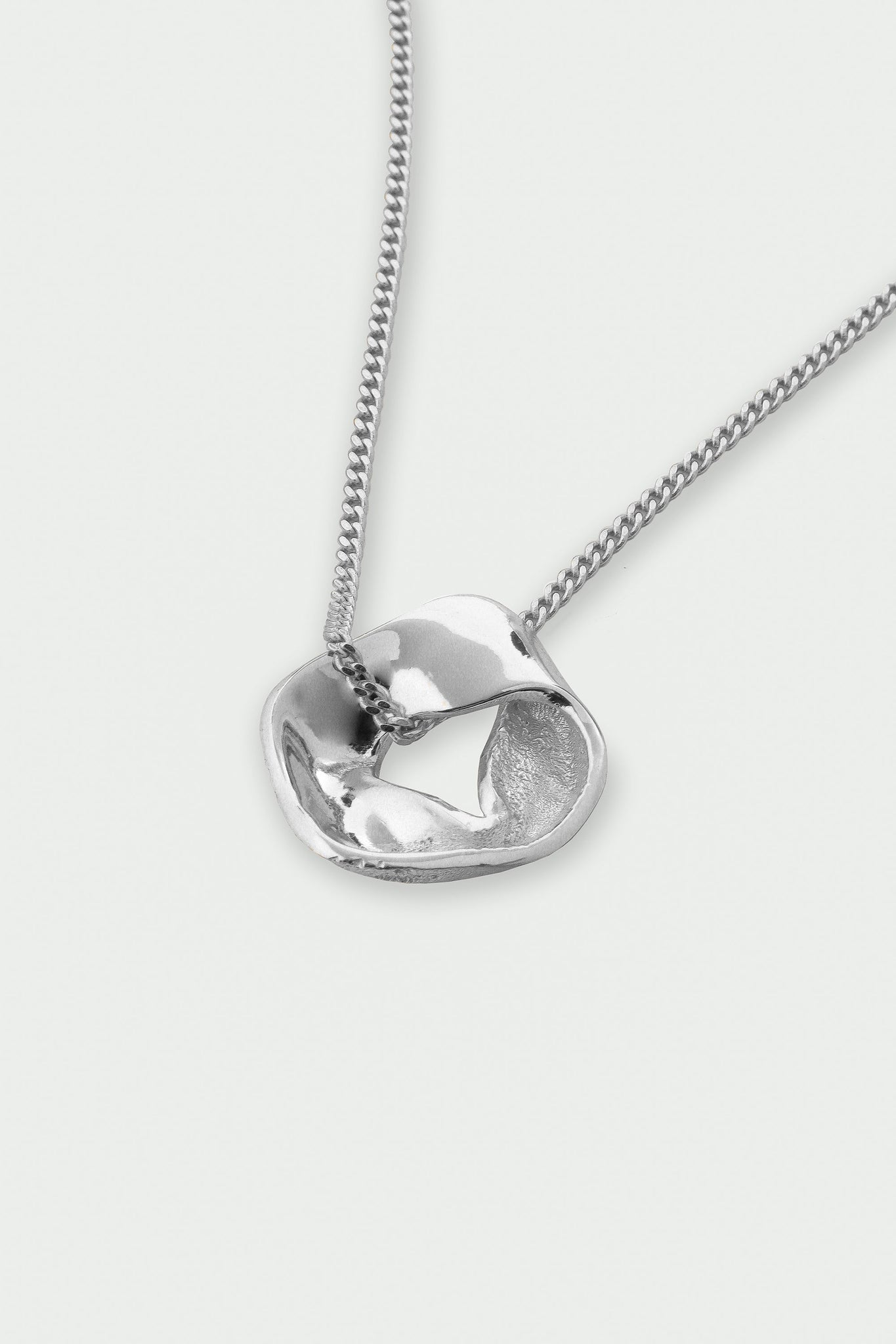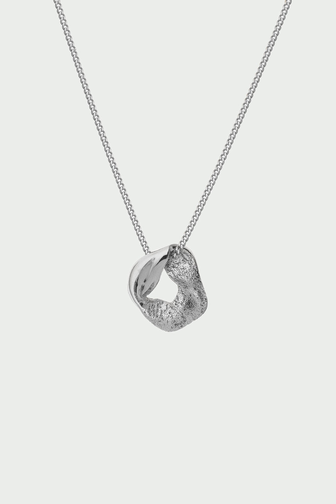 The Motion Necklace features a interlocking pendant in a contrasting textured and polished finish.
