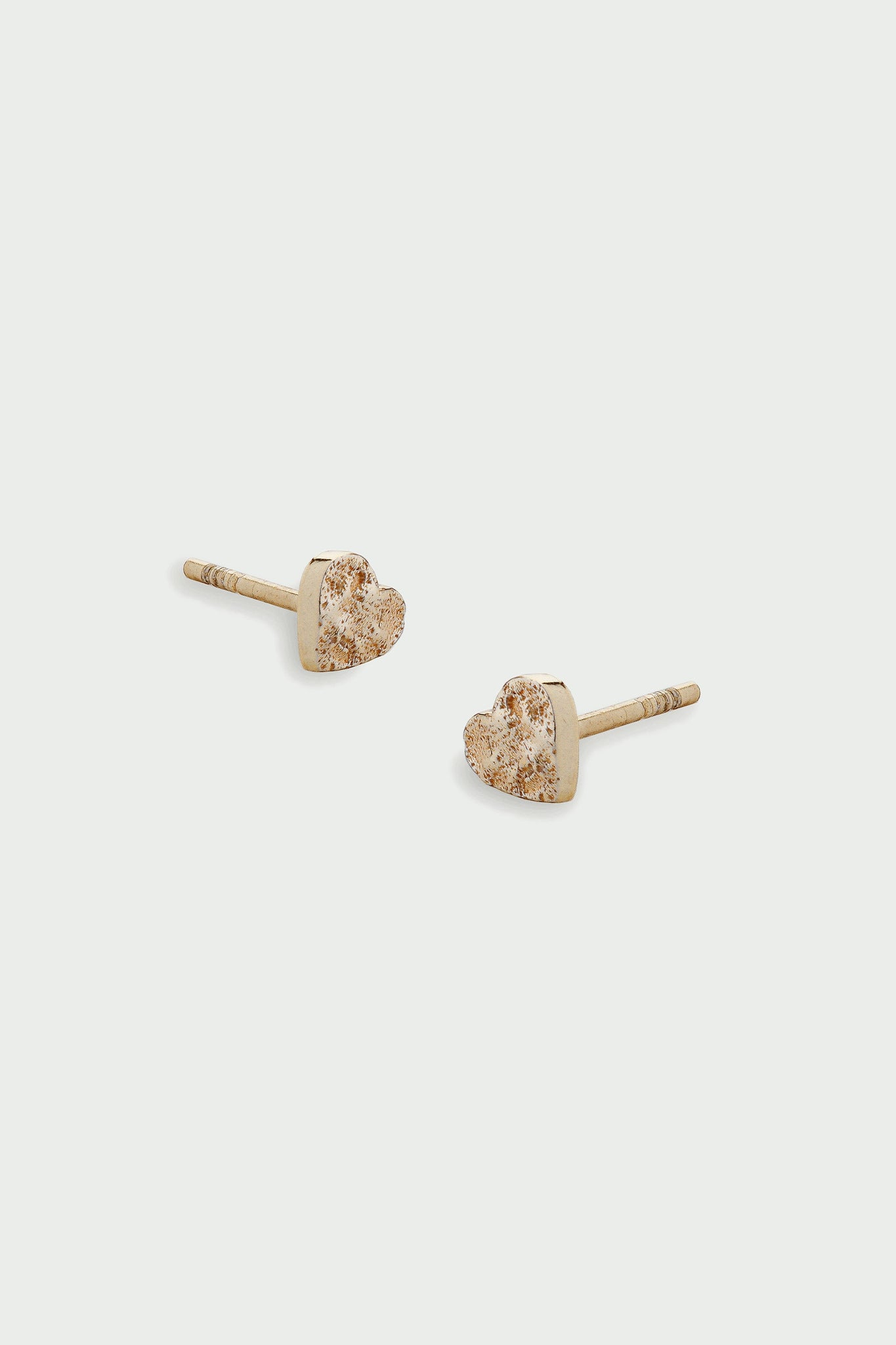 The Spirit earrings are stud earrings featuring a textured heart design.