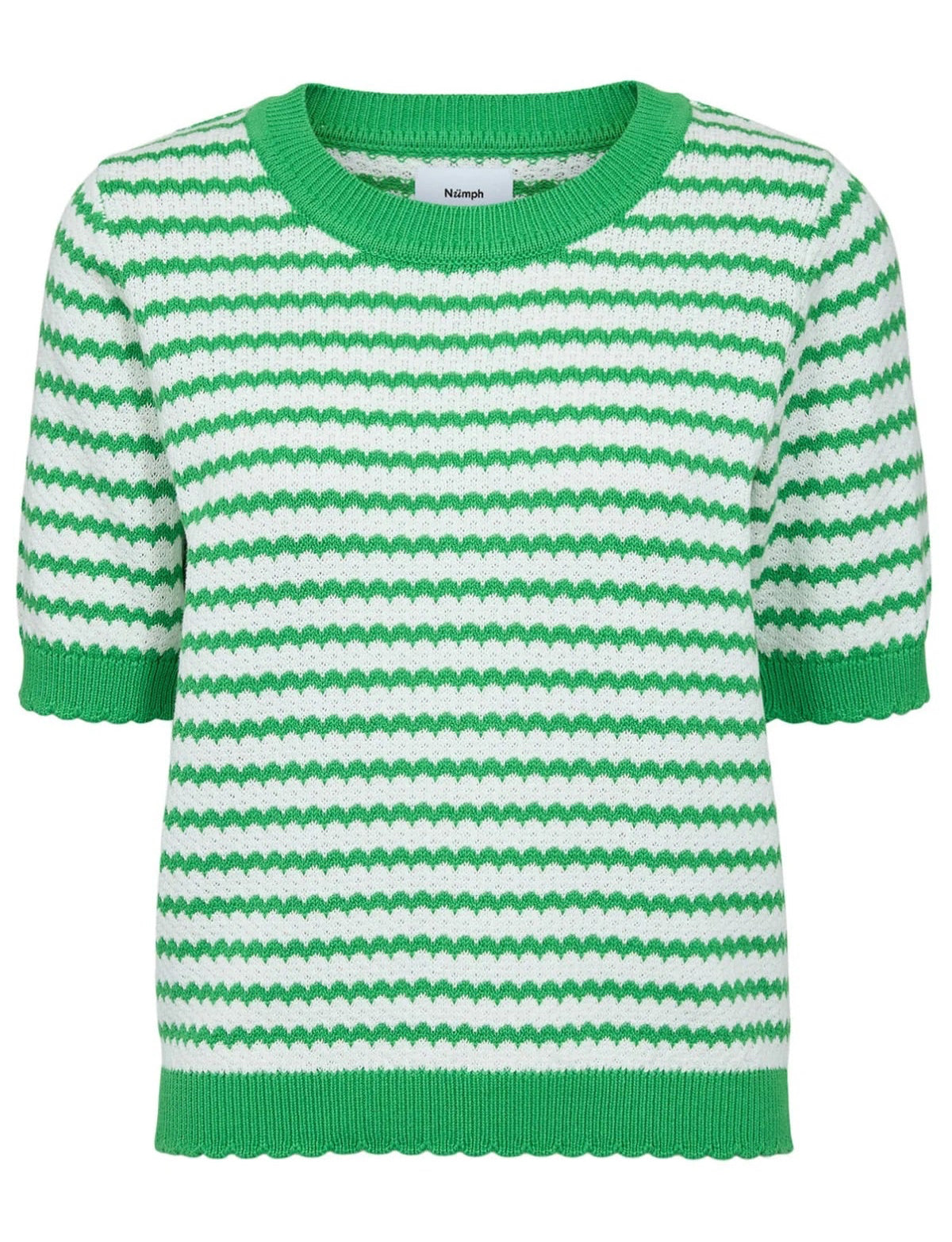 Fresh, fun and effortlessly cool, the Mari jumper brings a pop of green with its playful stripes and scallop edging. Perfect for brightening up everyday looks with a touch of laid back charm.