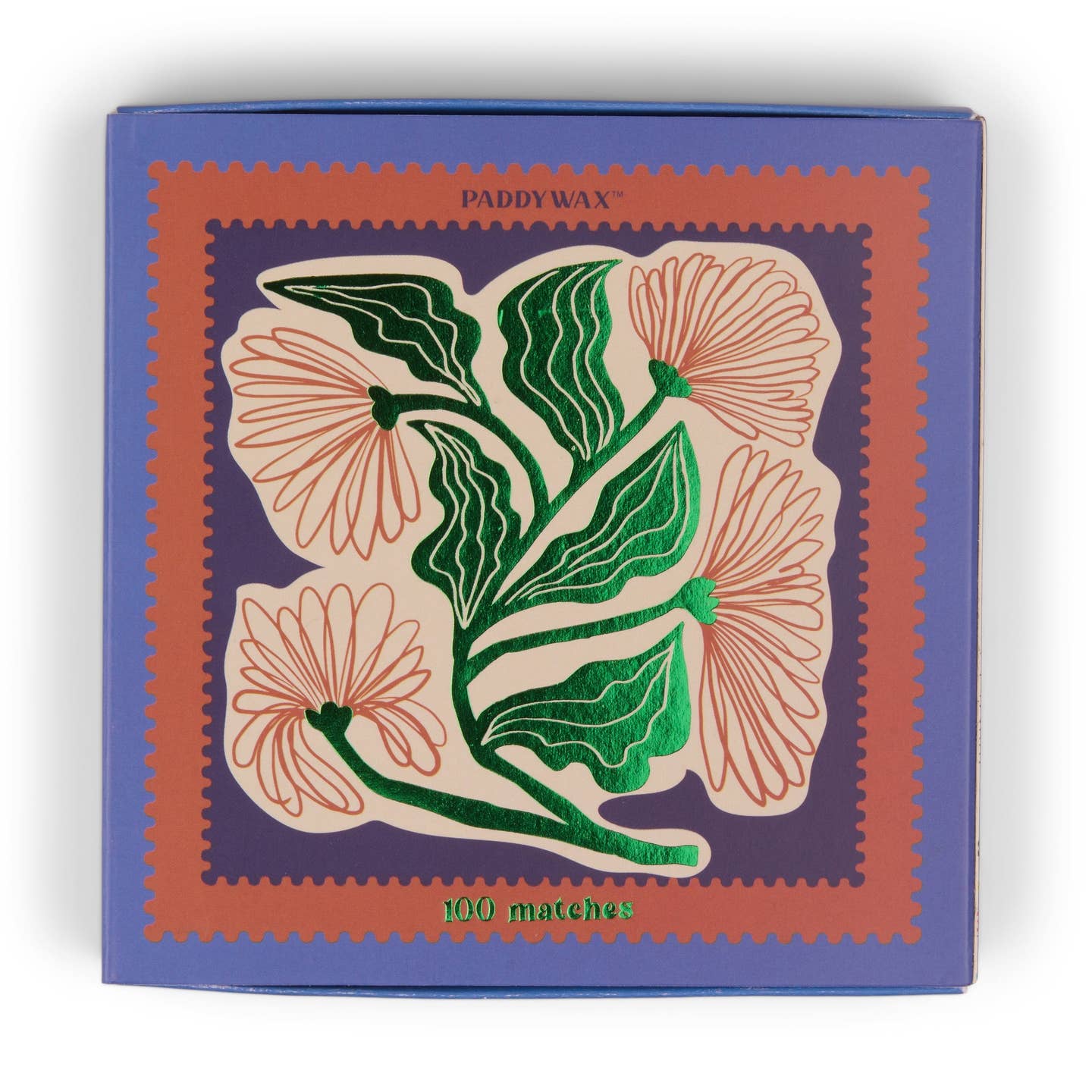 These sets of 100 matches come in a hand illustrated work of art matchbox. Each box features metallic or glossy accents, two strikers, and all 100 match tips are colored to match the design. Jumbo matches are a perfect accessory to gift with any Paddywax candle.