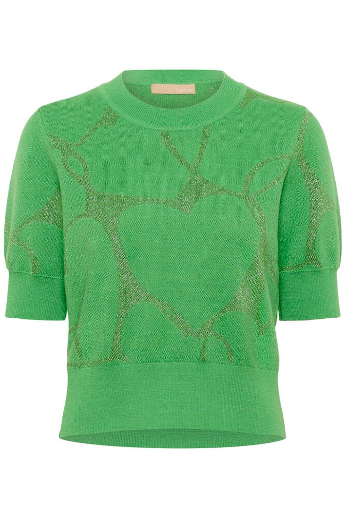 A feel-good knit with standout charm! The Culture Hearty Pullover features a bright green hue with subtle shimmering heart detailing and a classic crew neck.