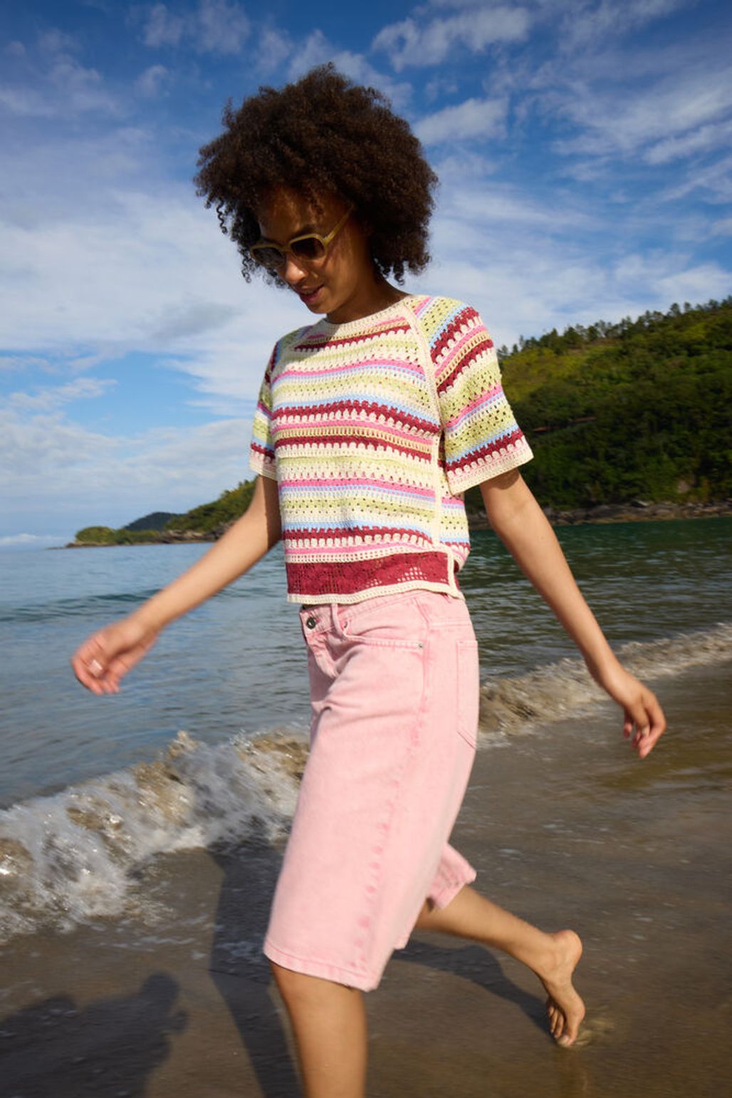 Embrace effortless style with the ICHI Bandie Short Sleeve Top. Crafted in a multi-coloured knit, this loose fit top is perfect for adding a touch of vibrant, boho-inspired flair to your everyday wardrobe. The regular length and relaxed design make it an ideal choice for casual outings or relaxed weekends at home. Pair it with your favourite jeans or a skirt for a chic, laid-back look.